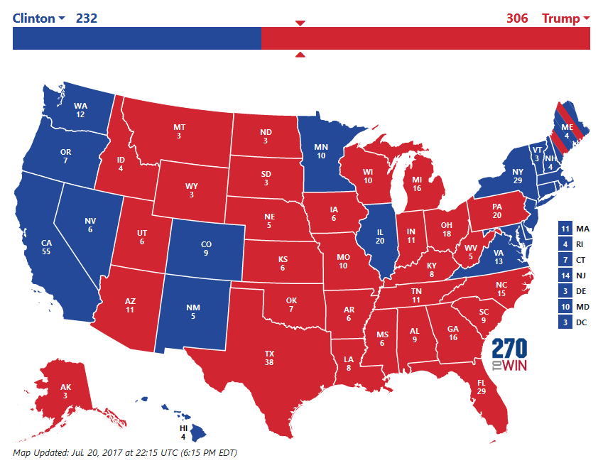 Here is how the electoral college ended in 2016: