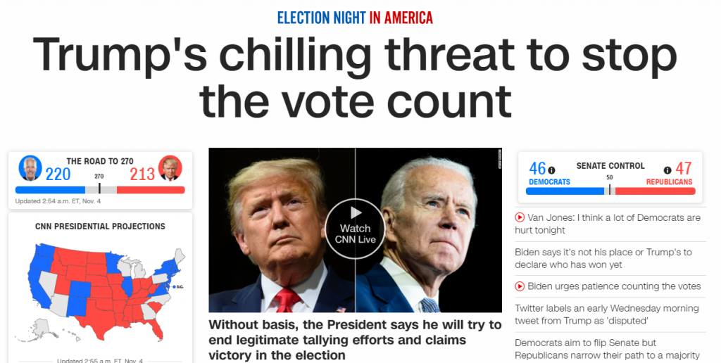 If the President does in fact go on to win the election tomorrow or in the coming days, we all know CNN will find anything and everything to sensationalize and bash the President about instead of reflecting on what they got wrong and how they continue to let their left ideology get in the way of fair and balanced reporting.