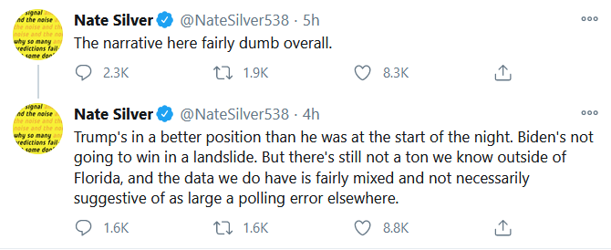 Nate Silver of FiveThirtyEight looks like he is not taking any accountability or responsibility for how wrong his site has been yet again.